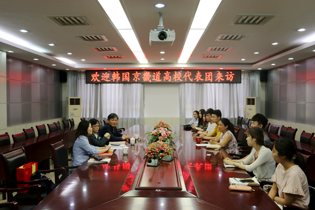 王淑霞代表学校对客人的到访表示欢迎。她着重从学校的发展历史与未来愿景介绍了学校基本情况,希望双方逐步在学科建设、学生联合培养、教师研修等方面开展合作。并高度赞赏了学校与韩信大学的成功合作,希望能够开辟更为广阔、更为深入的合作局面。