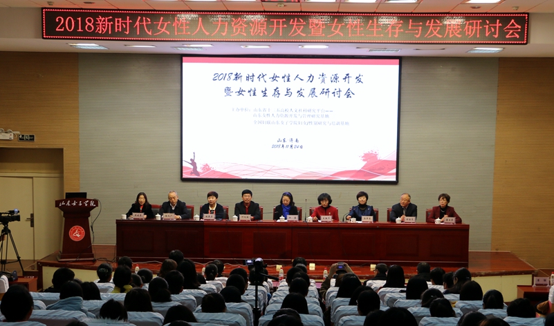 11月24日,2018新时代女性人力资源开发暨女性生存与发展学术研讨会在我校隆重召开。本次研讨会的主题是深入探讨习近平新时代中国特色社会主义妇女发展思想,客观分析新时代女性人力资源开发和女性生存与发展所面临的问题和挑战,提出进一步推动性别平等和妇女全面发展的对策建议。学校党委书记郭翠芬出席开幕式并致辞,全国妇联妇女研究所副所长杜洁、山东省妇联副主席王淑萍、海南省妇联副主席林英姿、山东省人社厅人才开发处处长褚国良、山东省教育厅科学技术处处长徐文广等出席开幕式。学校纪委书记黄晓彦主持开幕式。来自首都经贸大学、厦门大学和山东财经大学等兄弟院校的专家、学者和征文代表,广东江门市、山东济南市等县(市)区妇联主席,以及学校教师和学生代表共计200余人参加了研讨会。