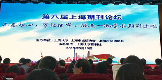 9月19日,由上海大学、上海市出版协会、上海市期刊协会联合主办,上海大学期刊社承办的“不忘初心,牢记使命,推进一流学术期刊建设——第八届上海期刊论坛”在上海大学举行,学报编辑部执行主编陈业强和编辑鲁玉玲参加了会议。