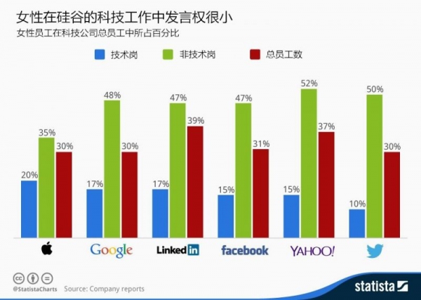 如今,在世界领先的科技公司中,女性在员工总人数中所占比例不超过40%。而这一比例在“科技相关”角色中,还会更低。